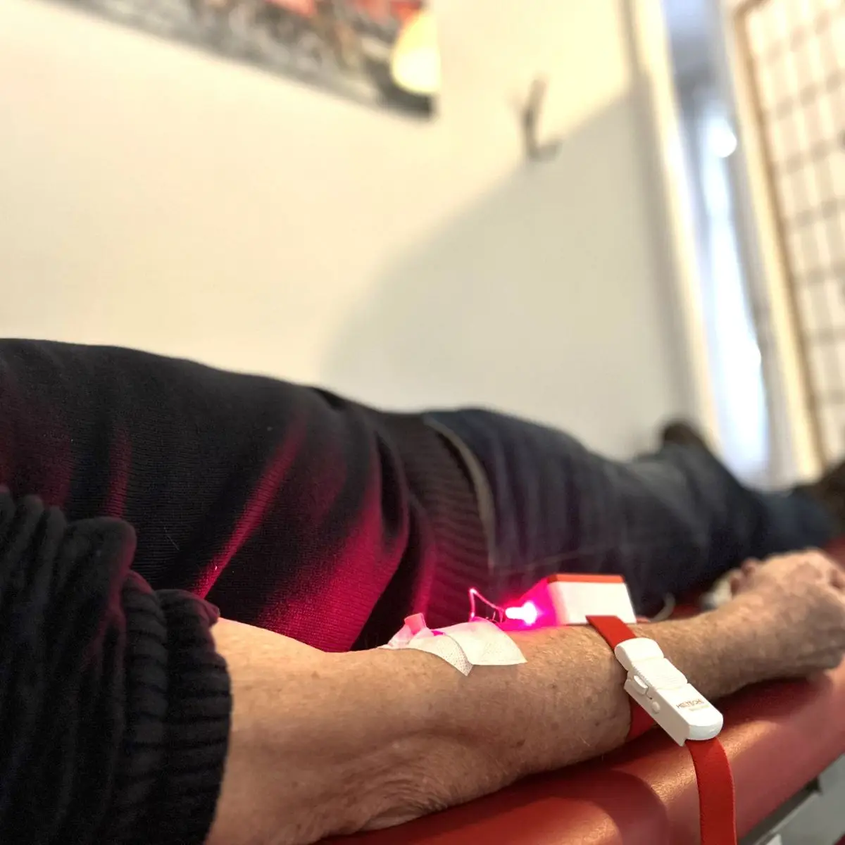Die Behandlung findet in ruhiger, entspannter Atmosphäre statt. Während der intravenösen Laseranwendung liegst du bequem auf einer Liege oder sitzt in einem komfortablen Sessel. Viele Kundinnen und Kunden empfinden die Zeit als wohltuende Ruhepause. Auf Wunsch sorgen leise Musik sowie Tee oder ungesüßte Getränke für zusätzliche Entspannung.